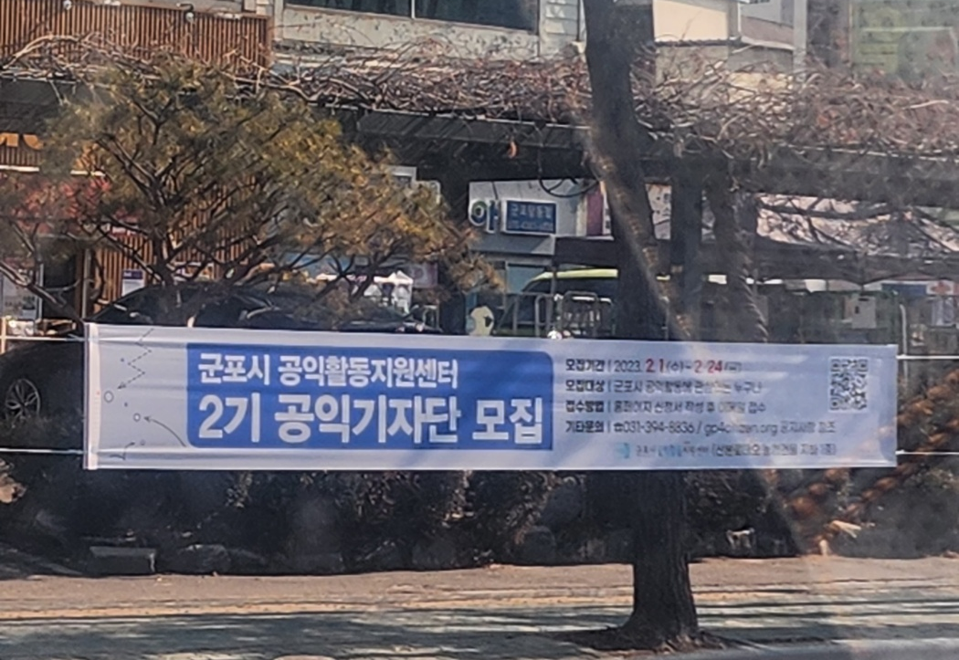 길을 가고 있는데 저런 현수막을 본다면 아무생각없이 그냥 지나치시는 분들도 많겠지만 저는 혹시 나에게 필요한 정보가 있지 않을까 하는 생각으로 사진을 찍어두기도 하는데요. 군포시에 거주 중인 부분도 있지만 공익기자단이라는 글자가 궁금해서 찾아봤습니다.