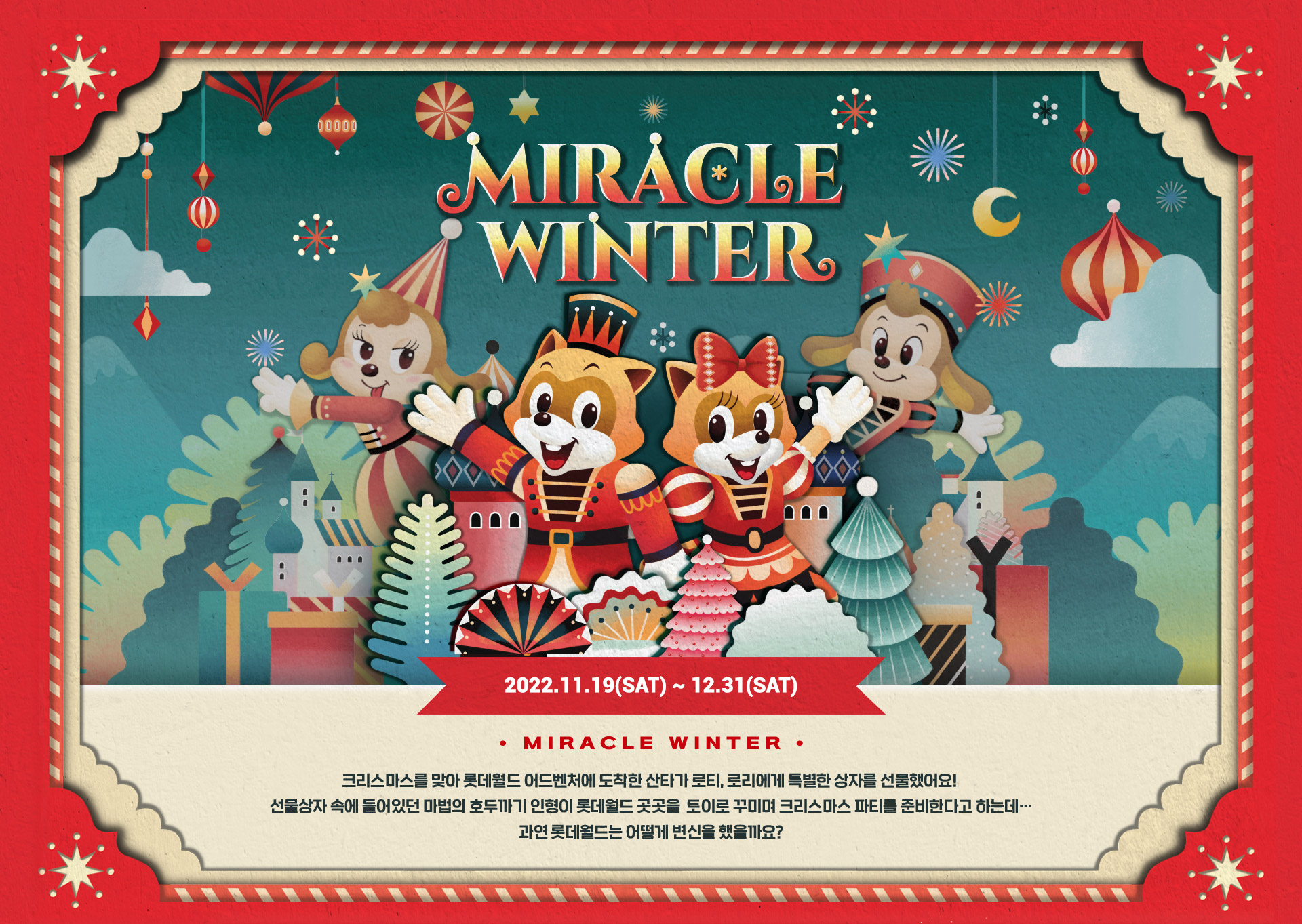 롯데월드 미라클 윈터 축제는 한국 대표 테마파크 중 하나인 롯데월드 어드벤처가 겨울 시즌을 맞이하여 22.11.19 미리 오픈한 축제로 22.12.31 종료 예정인 축제로 시즌 종료 전 데이트 코스로도 탁월한 선택일 수 있습니다!