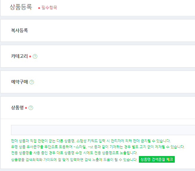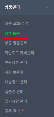 상품 등록 메뉴를 눌러보시면 오른쪽에 다음과 같은 창이 뜰 텐데요!